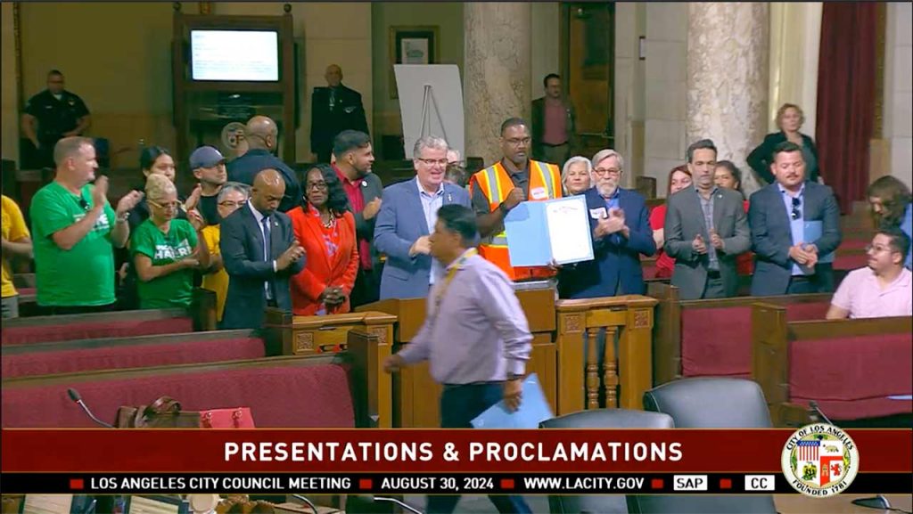 On Friday, August 30, President Larry Gates and several other union presidents were presented with a certificate of thanks by the City Council for their efforts to fight for the rights of city workers. The full Labor Day ceremony, which includes speeches by Yvonne Wheeler, can be viewed here: Labor Day Presentation